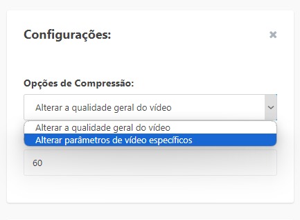 O primeiro passo ao entrar no site é alterar as configurações de compressão. Na seção "configurações", escolha "alterar parâmetros de vídeo específicos". Conforme mostra a imagem abaixo.